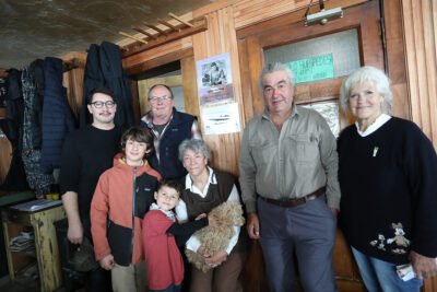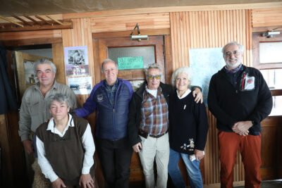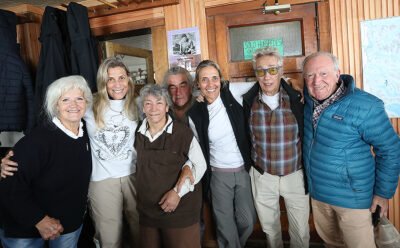 Marcos Masson y Graciela junto a su hijo Santiago, los nietos Oliver y Felix, Carlos y Patricia Sonntag, en el homenaje realizado en el refugio.
